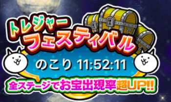 にゃんこ大戦争ではお宝の獲得イベントとして トレジャーフェスティバル というイベントが開催されています。 開催時間 このお宝の獲得イベントである トレジャーフェスティバル は毎日決まった次回に開催されています。 にゃんこ大戦争 にゃんこ大戦争 配信元 ポノス 配信日 「にゃんこ大戦争」 8と1/2周年記念イベント第3弾開催のお知らせ ポノス株式会社 にゃんこ大戦争 『にゃんこ大戦争』には、「めっぽう強い」「打たれ強い」など、パッと見では内容がわかりにくい効果が存在する。 今回は、戦闘に直接影響しやすい効果をピックアップして、各効果の内容を解説していこう。 目次 1 効果を理解して最適な編成を組もう! 2 ダメージに関わる効果は主に6種類 └ 超ダメージ&極ダメージ └ 打たれ強い&超打