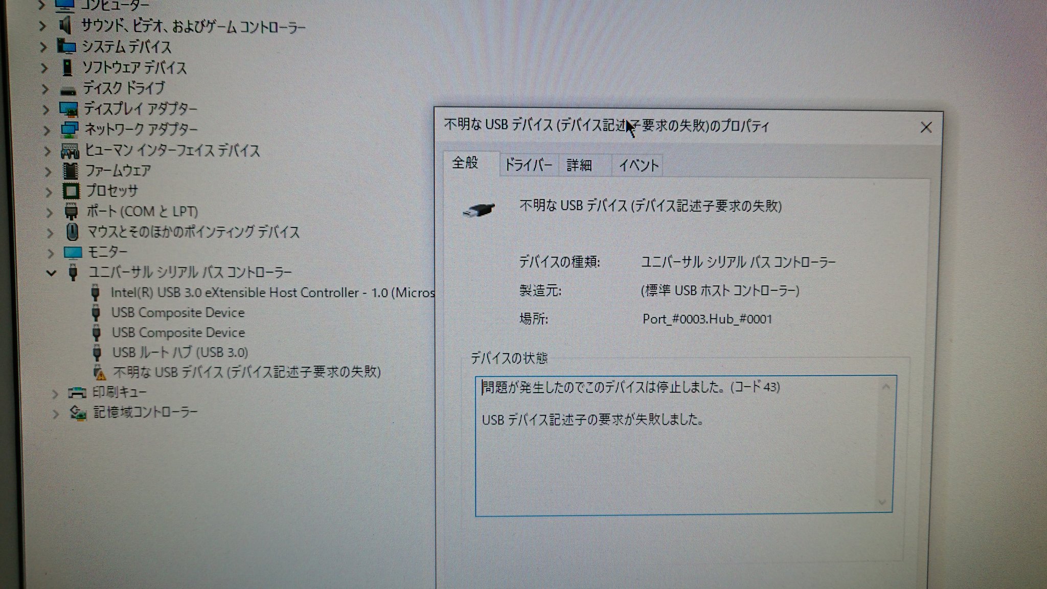 問題が発生したのでこのデバイスは停止しました コード43 はケーブルを変えたら解決した 山本隆の開発日誌